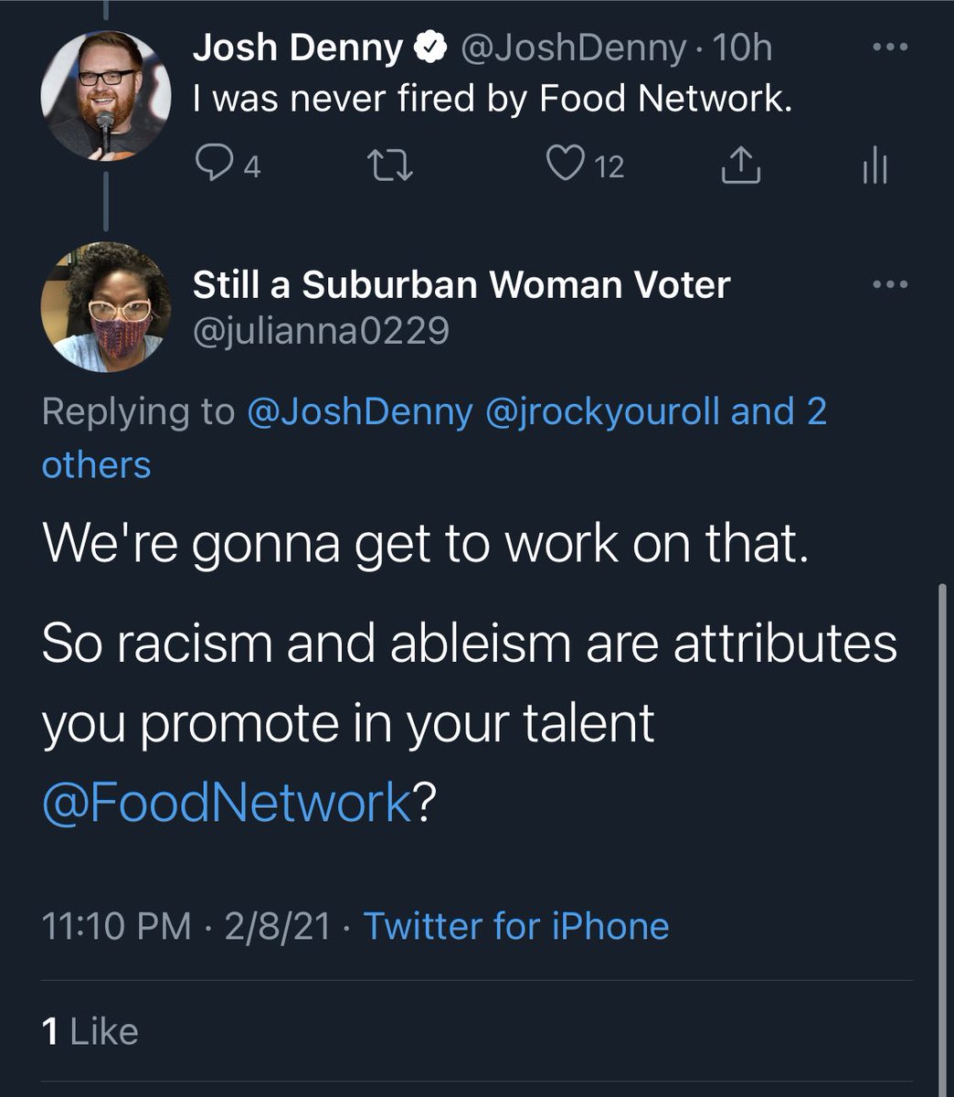 Josh Denny On Twitter The Worst Part Of Cancel Culture Is Honestly How Lazy It Is If You Re Going To Get Me Fired From Foodnetwork You Re Going To Need A Time Machine